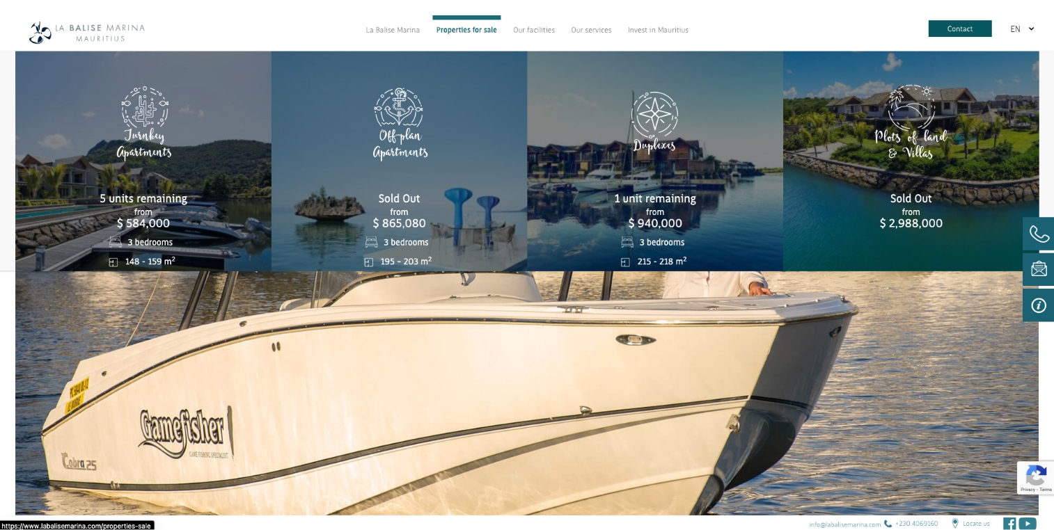 The only residential marina of Mauritius, La Balise Marina comprises 143 freehold waterfront residences and high-end facilities. We designed a high-end website that gave out important information to potential buyers or investors. Although the website does the job of an e-commerce website meant to collect data from buyers and investors, we managed to make it feel upmarket and attract people to the dream they sell. Inspired by marine life, the website relevantly showcased the unique lifestyle offered by the project.